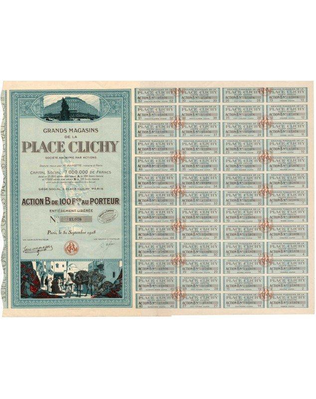 Share B to bearer of 100 francs issued in Paris in 1928.