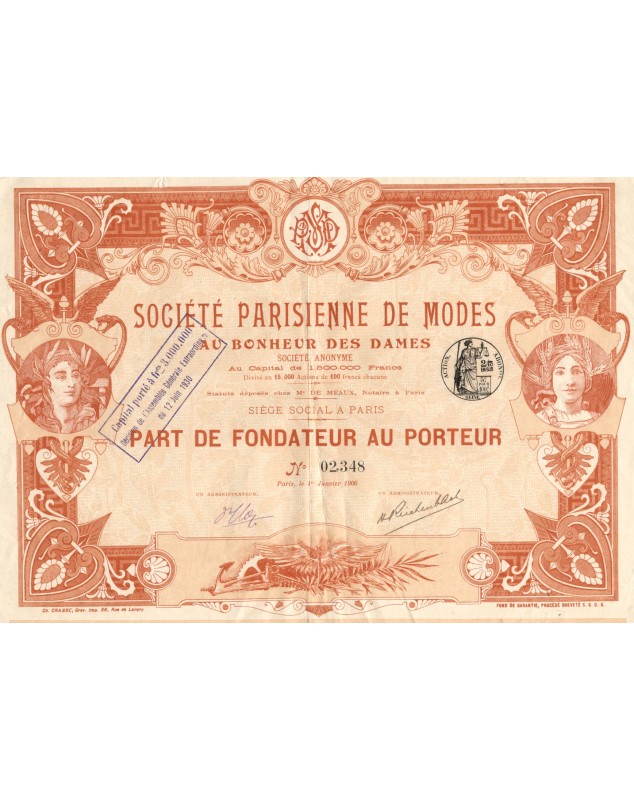Sté Parisienne de Modes ''Au Bonheur des Dames'' (1906)