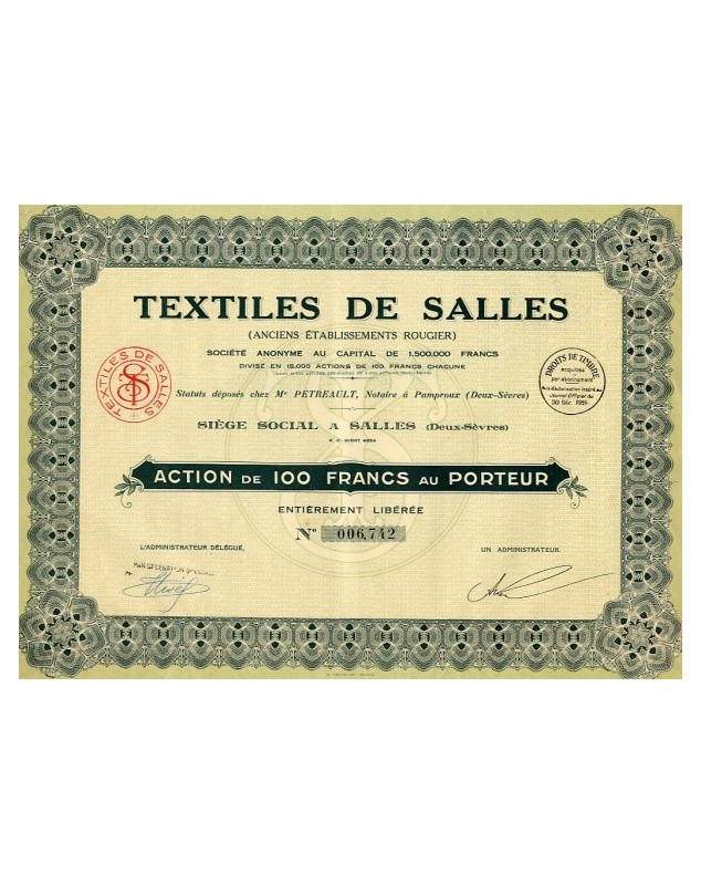 Share of 100 F - Salles 1928