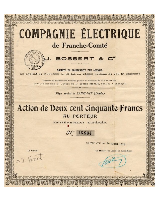 Cie Electrique de Franche-Comté. J. Bossert & Cie