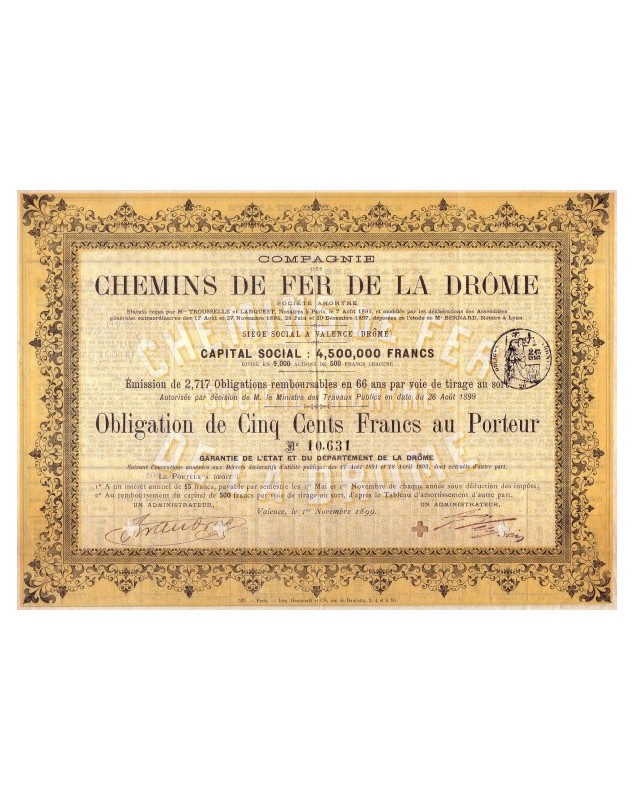 Concesssion granted by the department to Mr. Marchand for 75 years, for the construction and operation of a network of locomotive traction trams for the transport of passengers and goods from Romans to Tain, Dieulefit to Montélimar, Grand- Greenhouse in Saint-Vallier and Chabeuil in Valence. Second agreement in 1893 for new lines: from Chabeuil to Ste-Eulalie-en-Riyans via Bourg-de-Péage, from Saint-Donat to Tain and Romans, from Châtillon to Pont-de-Quart.