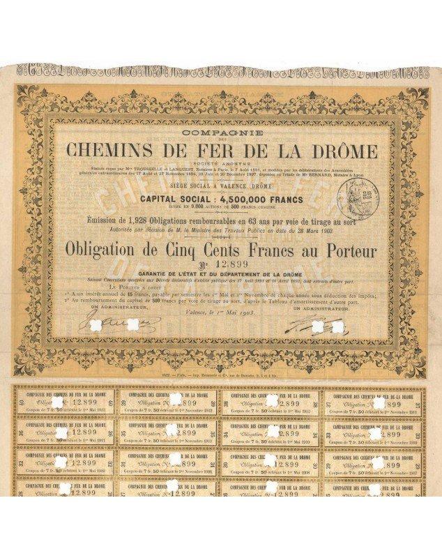Bond to bearer of 500 francs issued in Valence in 1903. Only 1928 bonds were issued.