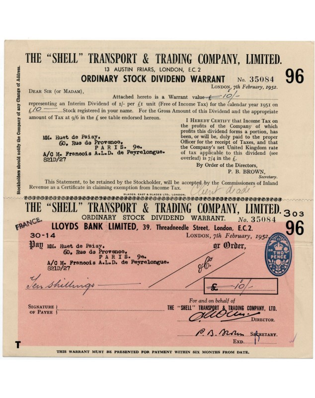 Stock Dividend Warrant - London 1952