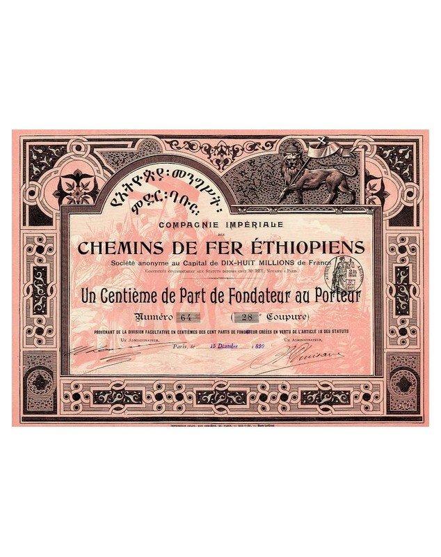 Ethiopia, Djibouti, Somalie Compagnie du Chemin de Fer Franco-Ethiopien de Djibouti à Addis-Abeba (1923)€50.00