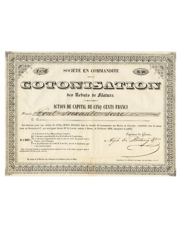 Share of 500F - Fontaine-les-Ribouts (Eure-et-Loire) 1858
