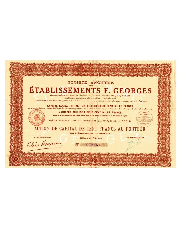 Share of 100f - Paris 1932