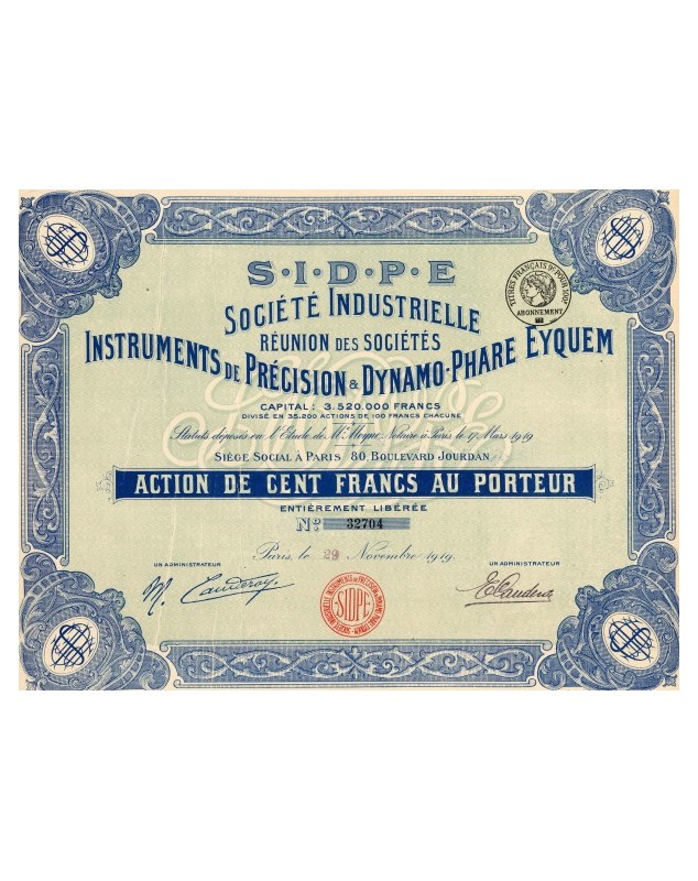 Share of 100F - Paris 1919