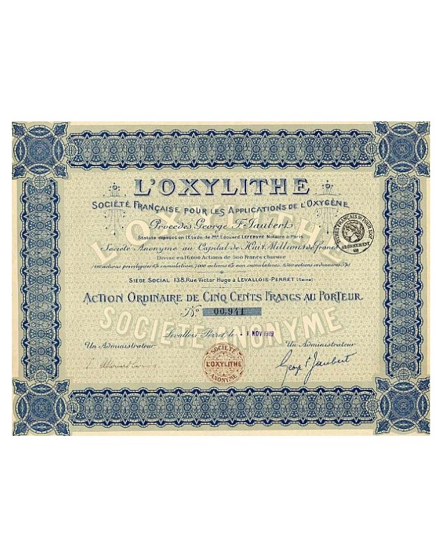 Share of 500F - Levallois-Perret 1919