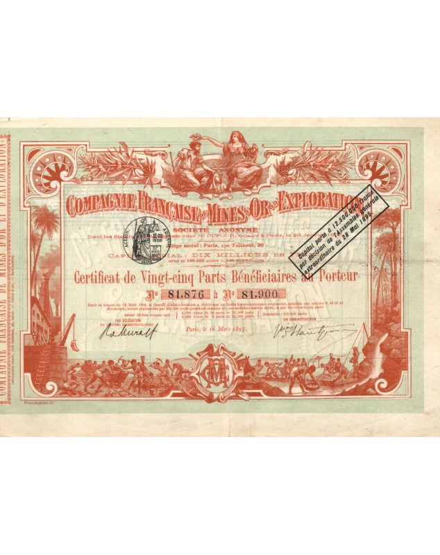 Certificate of 25 Beneficiary Shares - Paris 1895