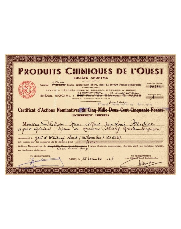 Cert of 1 share of 175F - Paris 1967