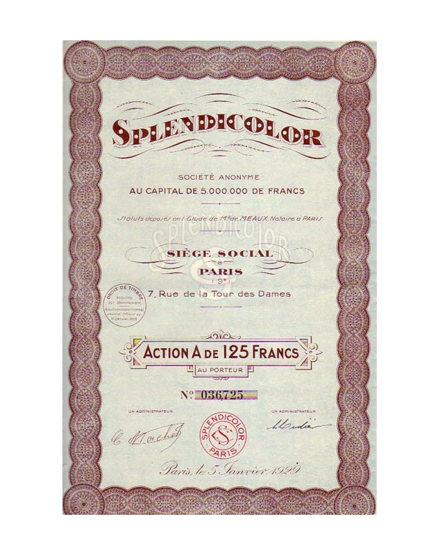 Share of 125F - Paris 1928