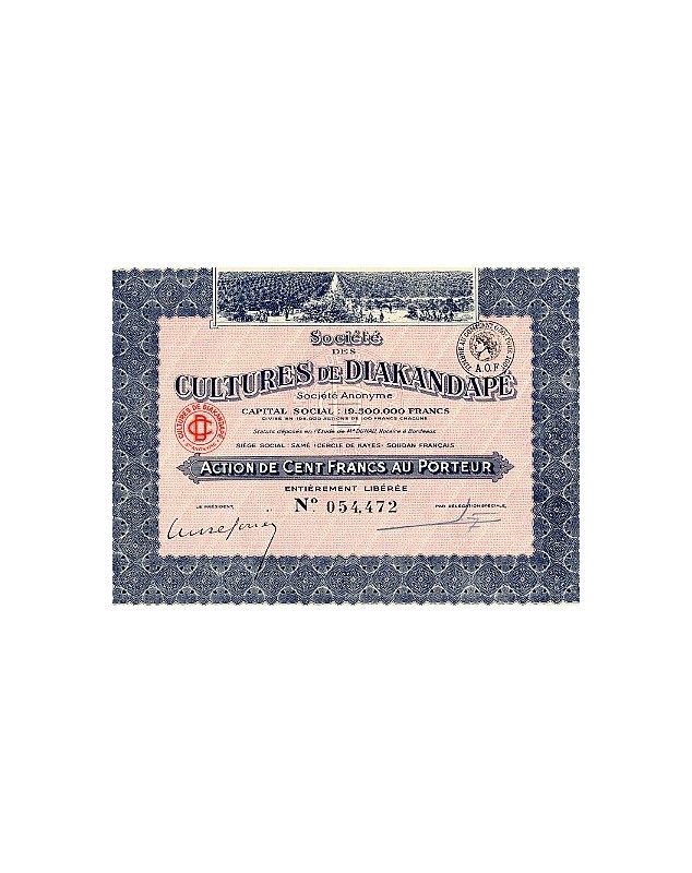 Bearer share of 100 francs, issued in Samé, Cercle de Kayes, in French Sudan.