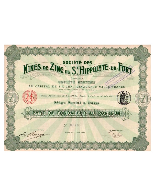Sté des Mines de Zinc de St Hippolyte-du-Fort (Gard). 1911