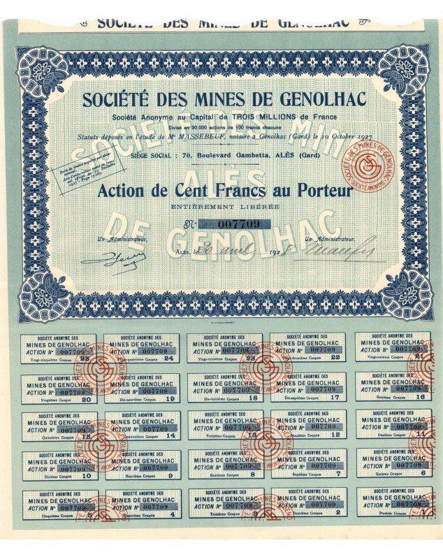 Share of 100F - Alès 1928