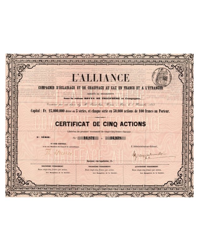 L'Alliance - Cie d'Eclairage et de Chauffage au Gaz, sous la raison Hovin de Tranchère