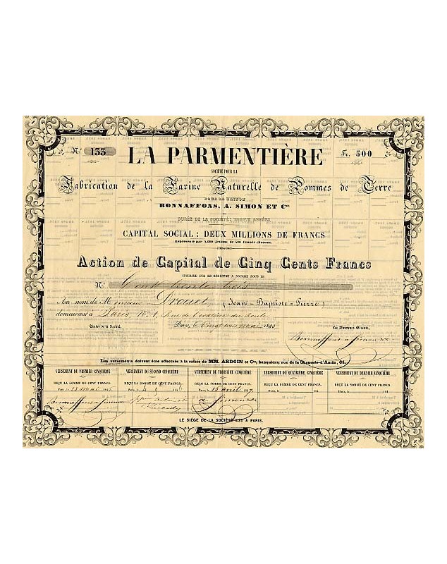pour la fabrication de la Farine Naturelle de Pomme de Terre, sous la raison sociale Bonnaffons, A. Simon et Cie.
