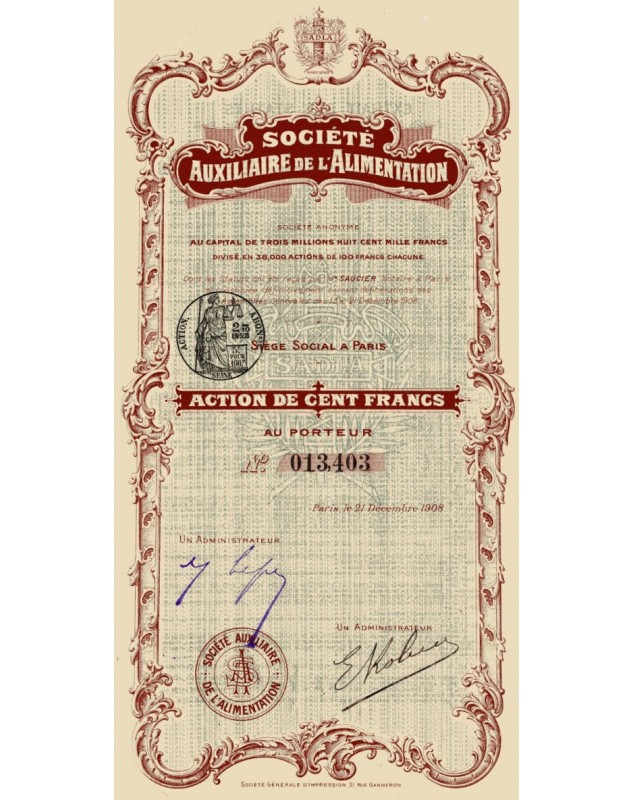 Share of 100F - Paris 1908