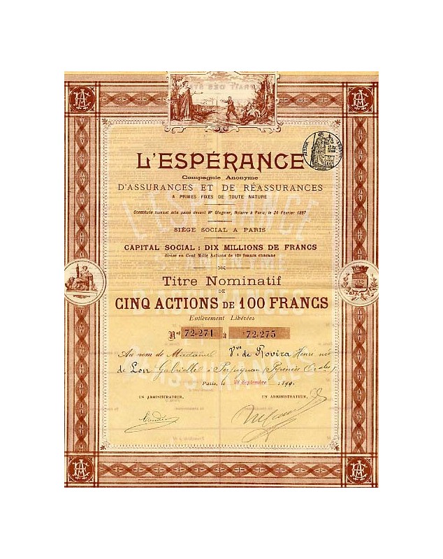 L'Espérance. Cie d'Assurances et de Réassurances