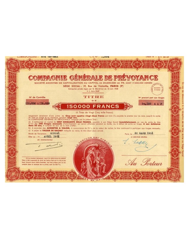 General insurances La Famille, Cie Anonyme d'Assurances Nuptialité - Natalité (Marriage and Natality)€30.00
