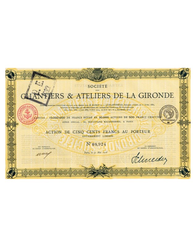 The company built the liner FRANCE, the largest clipper in the world at its time, which, making the Europe-New Caledonia line via Cape HORN, ran aground in July 1922 on the reef of TEREMBA, opposite the town of MOINDOU in New Caledonia.
