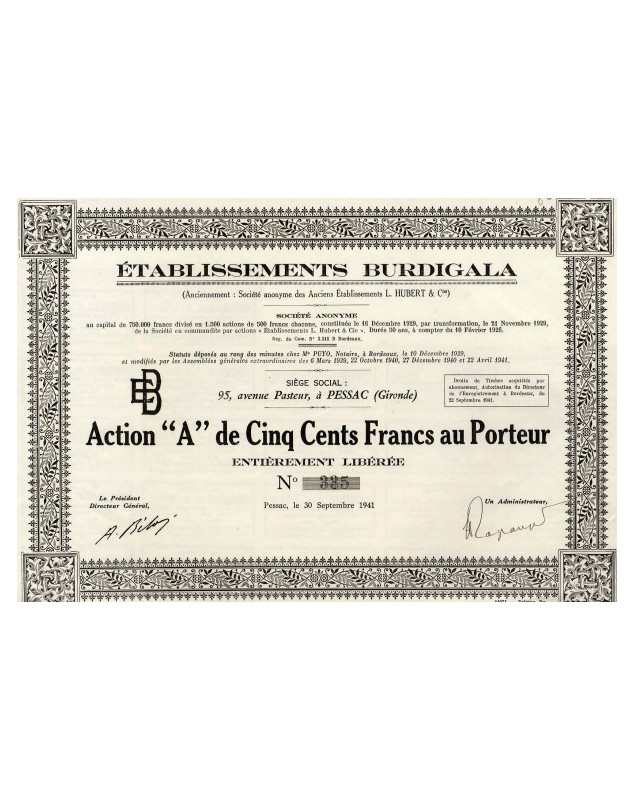 Share A of 500F - Pessac 1941