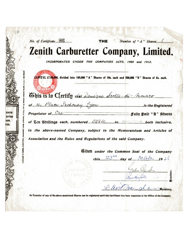 British company founded in 1910 which manufactured carburettors in Stanmore Middlesex. In 1965, Zenith joined forces with Solex.