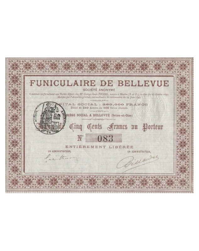 Share of 500F - Bellevue (Meudon) 1893 - Very rare (560)