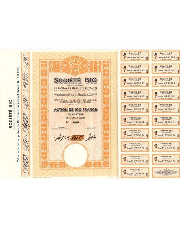 Specimen (number 00000) with facsimile signatures. With the famous Bic brand logo.