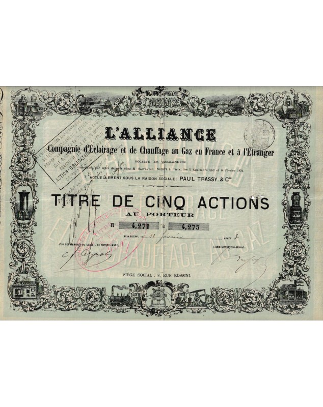 L'Alliance - Cie d'Eclairage et de Chauffage au Gaz en France et à l'Etranger, sous la raison Paul Trassy & Cie
