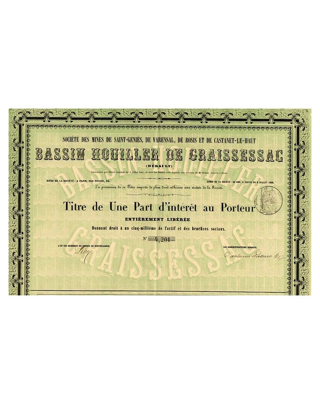 Société des Mines de Saint-Geniès, de Varensal, de Rosis et de Castanet-Le-Haut.