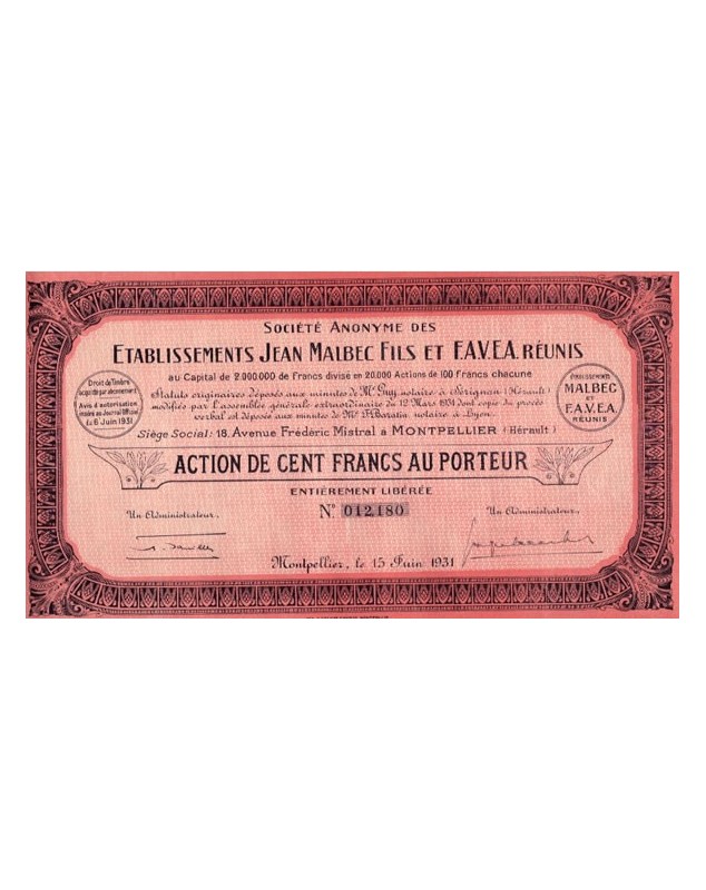S.A. des Ets Jean Malbec Fils et F.A.V.E.A. Réunis