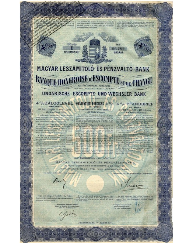 4% Bond of 500f Gold Budapest 1911