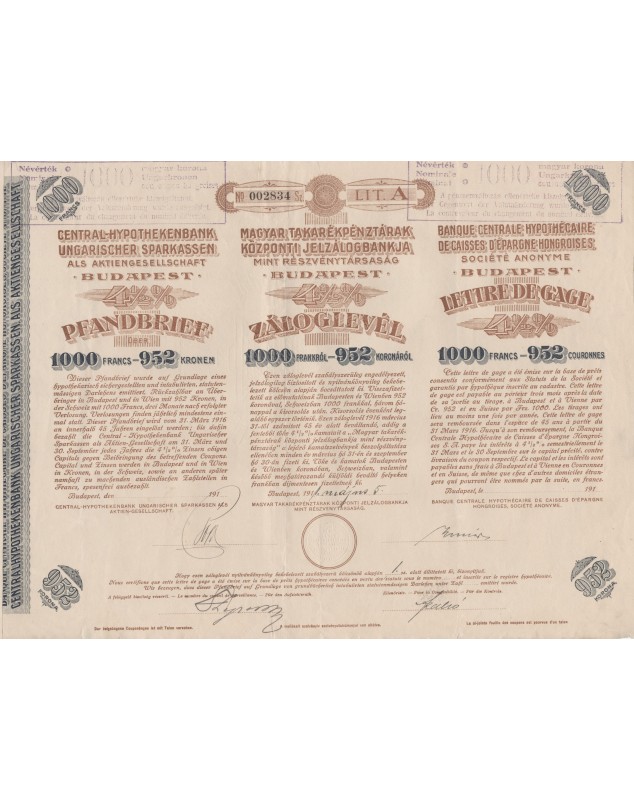 4,5% Zaglovel 1000F/952 Kr - Budapest 1911