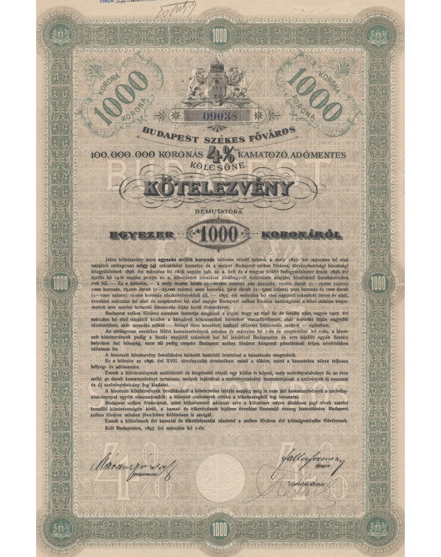 Haupt- und Residenzstadt Budapest 4% Anleihe 5000Kr