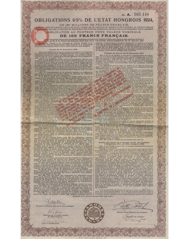 Royaume de Hongrie - 6.5% Bond 1924