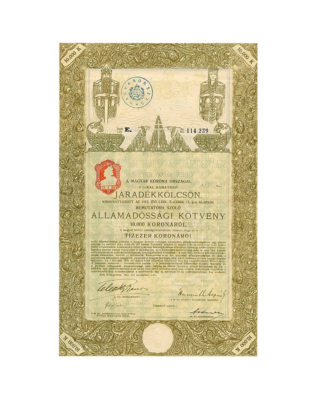 Kingdom of Hungary - 6% Bond 10,000 Kr, 1915