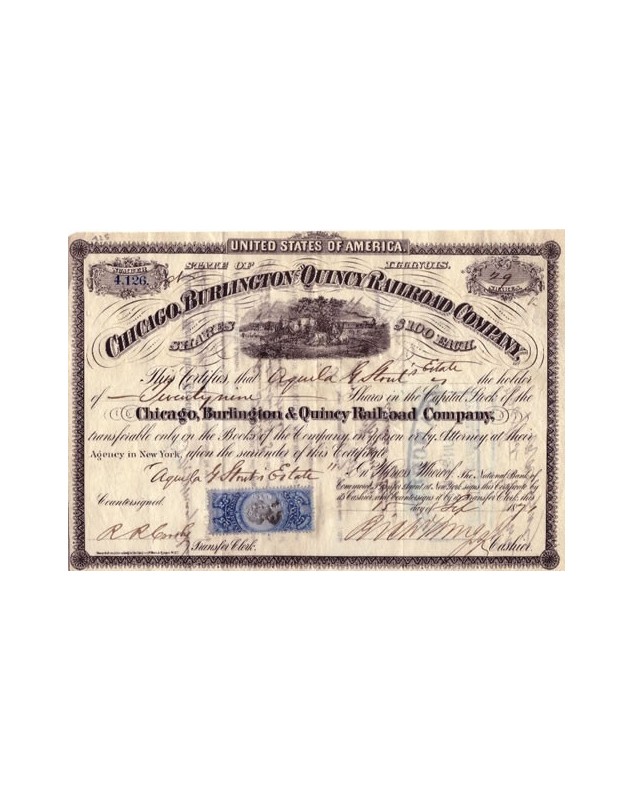 Certificate of 29 Shares of 100$ each - Illinois 1871