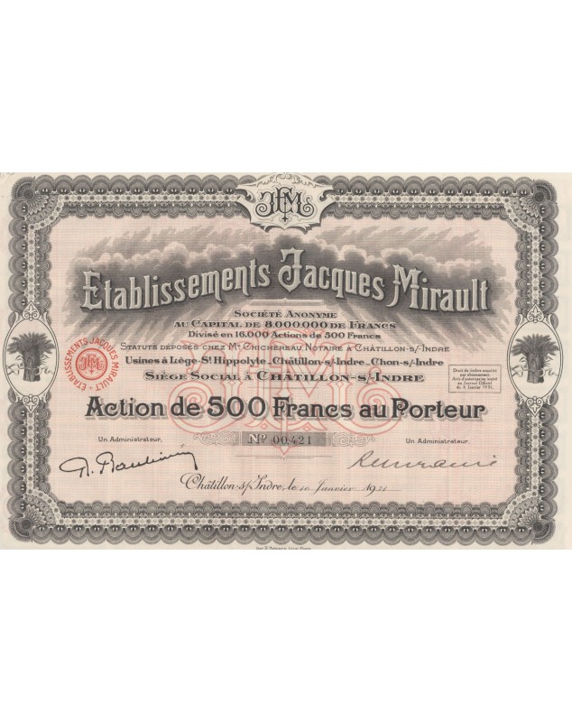 Share of 500 francs issued in Châtillon-sur-Indre in 1931.