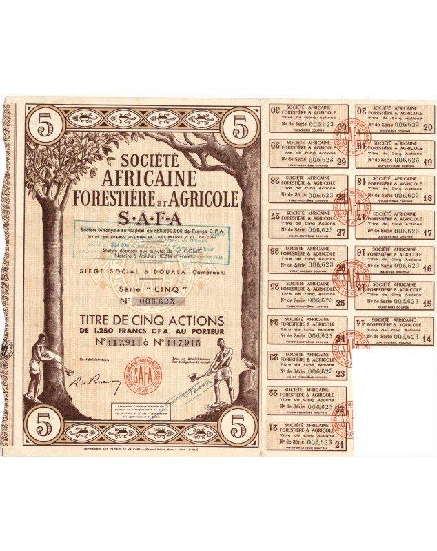 Certificate of 5 Shares of 100 CFA Francs issued in Douala in 1959.