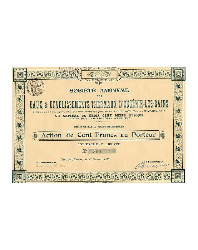Share of 100F - Mont-de-Marsan 1908
