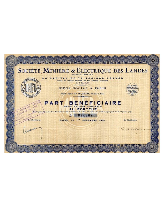 Beneficiary share - Paris 1931