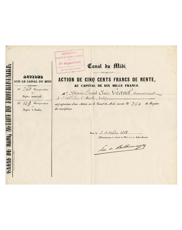 Share of 500 F - Paris 1888