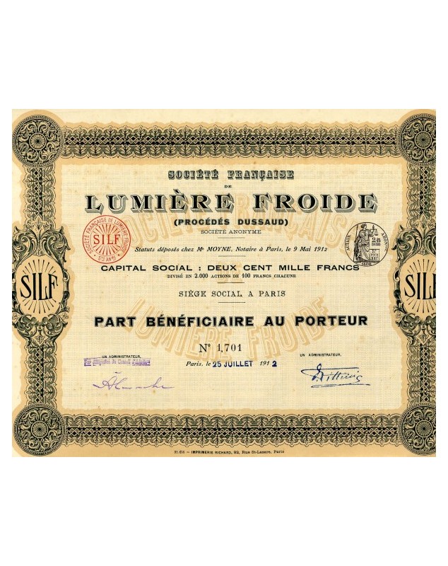 In 1916, inventor Charles Francois Dussaud was granted a patent for a lighting system capable of giving a light of very great intensity without producing any appreciable heat. It was a lighting device for photography