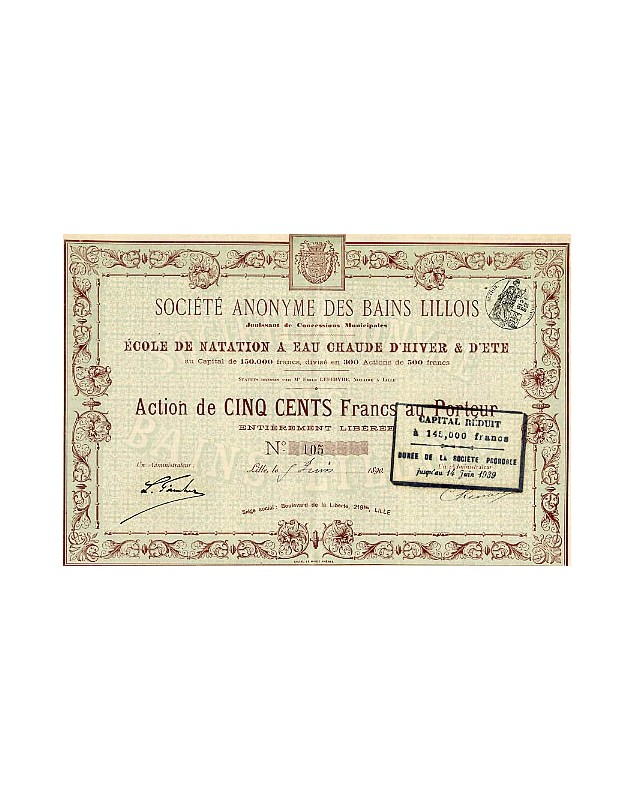 Share of 500F - Lille 1890.