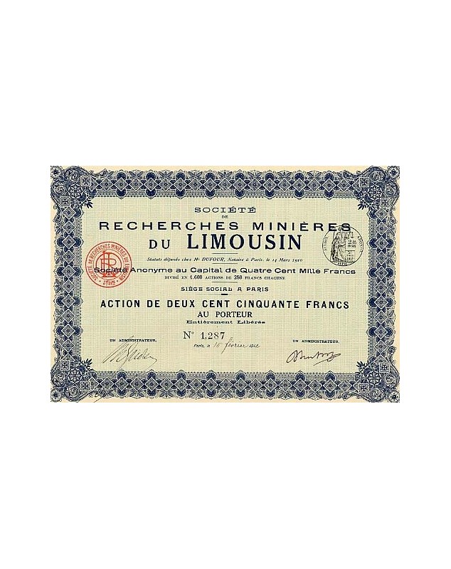 Share of 250F - Paris 1912