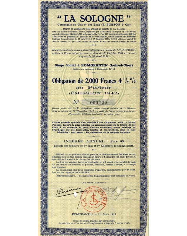 Bond of 2000F 4,1/4% - Romorantin 1945