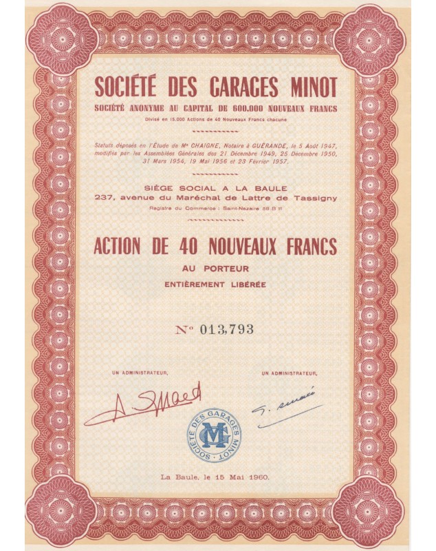 After opening a first car garage in Saint-Nazaire, Paul Minot had a second one built in La Baule in 1922. In 1927, Minot asked the Baulois architect Paul-Henri Datessen to redo the facade of his garage. The latter offers him a "colonial art deco" facade with a flying wheel motif in the pediment.