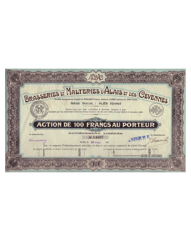 Brasseries et Malteries d'Alais et des Cévennes. 1931