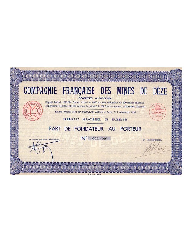 The Compagnie Française des Mines de Dèze deposit is made up of the Felgerette vein, straddling the concessions of Collet de Dèze and Saint Michel de Dèze.