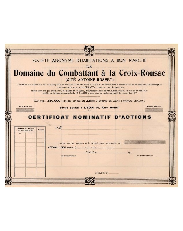 S.A. d'Habitations à Bon Marché Le Domaine du Combattant à la Croix-Rousse (Cité Antoine-Rosset)